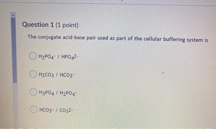 Solved Question 1 1 Point The Conjugate Acid Base Pair Chegg Com